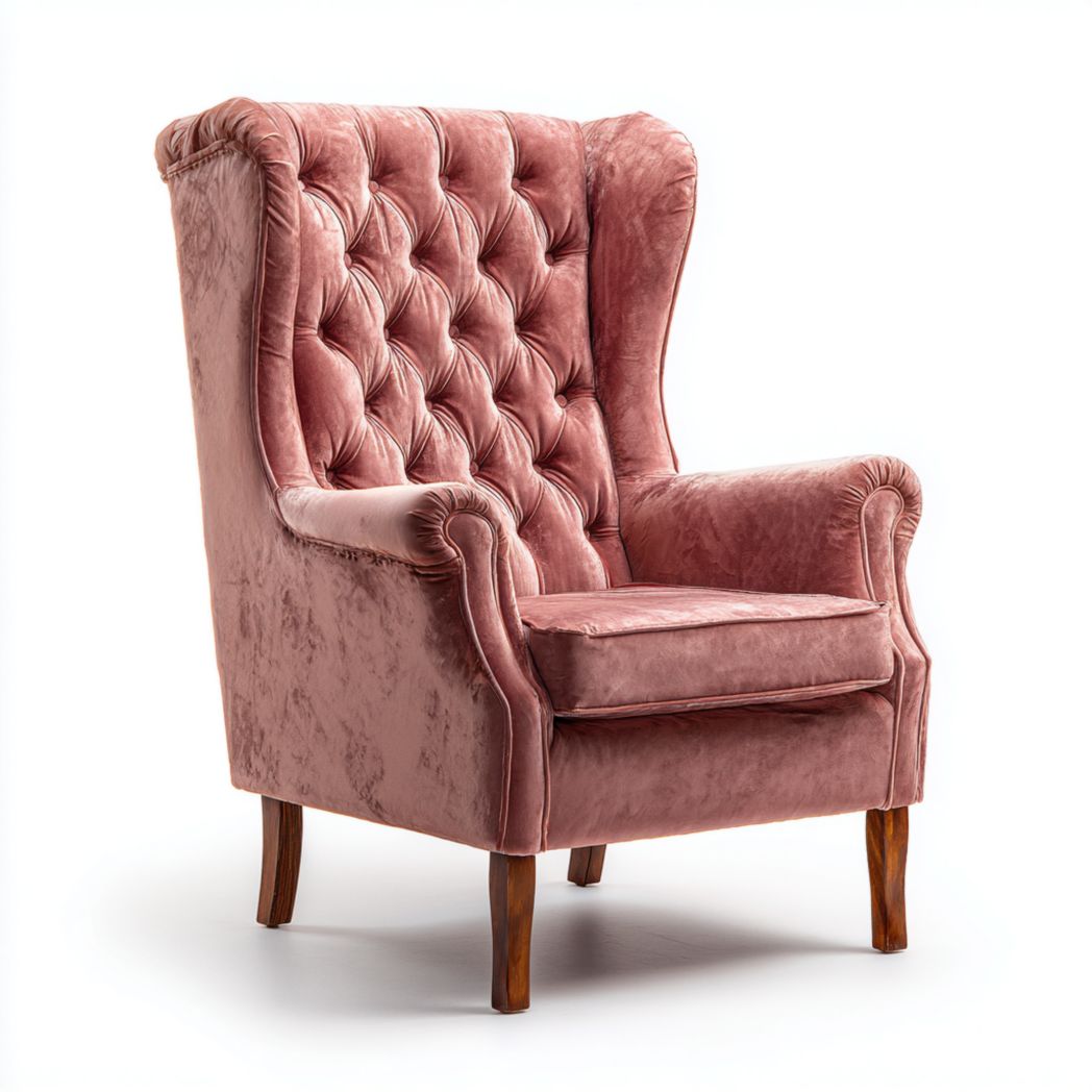 Fotel tapicerowany ciemnoróżowy z drewnianymi nogami