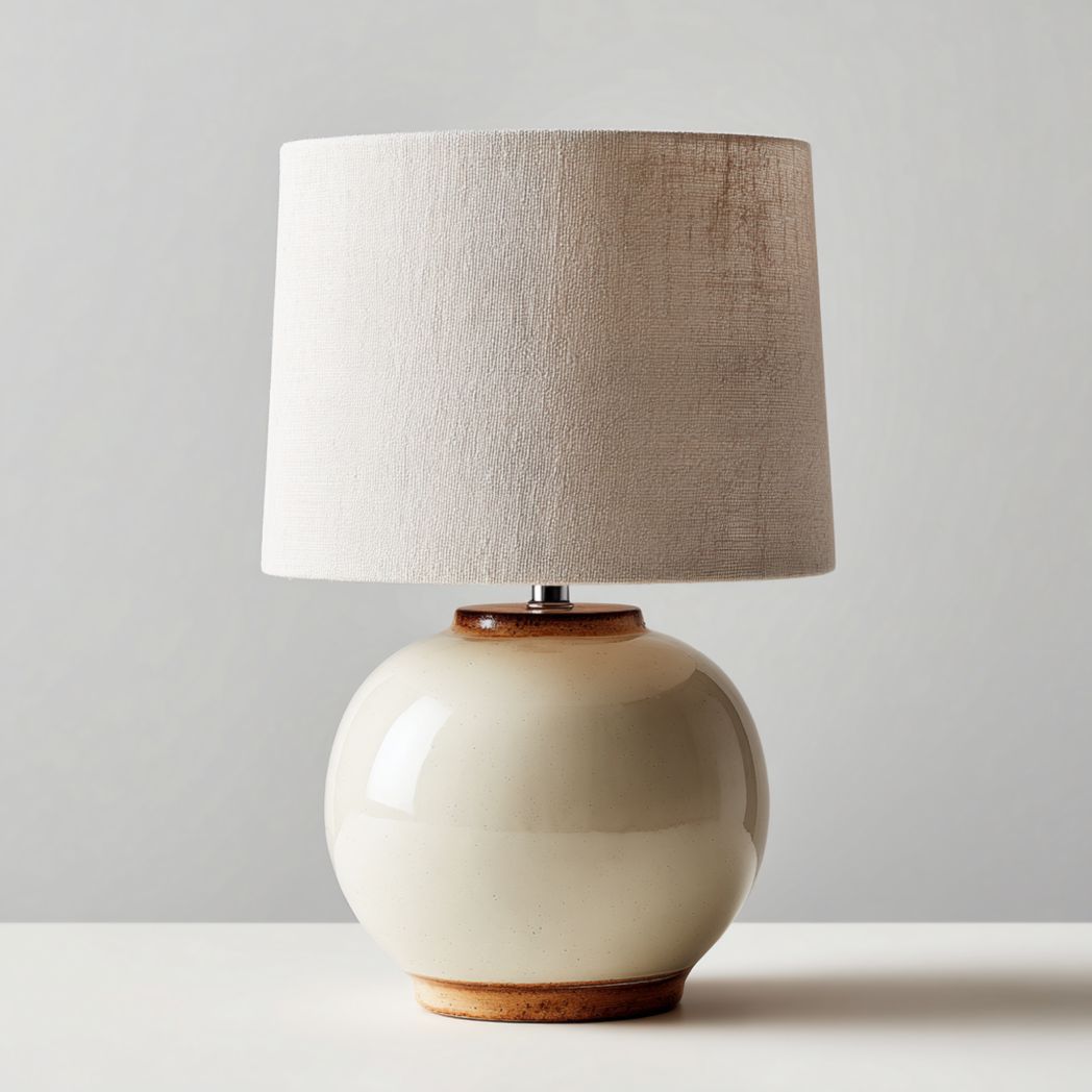 Lampa stołowa ceramiczna z kloszem materiałowym beżowa E27