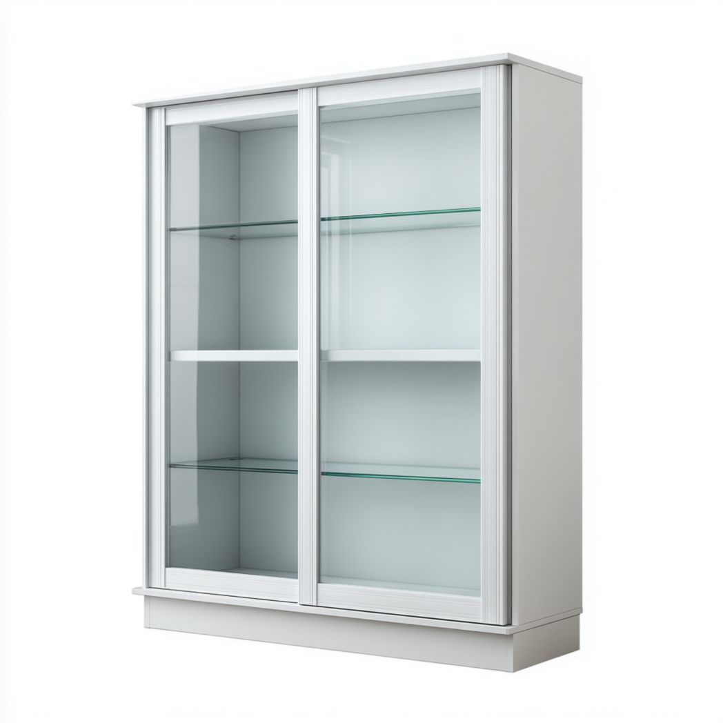 Materiał: płyta malowana (korpus), szkło hartowane (drzwi przesuwne i półki)